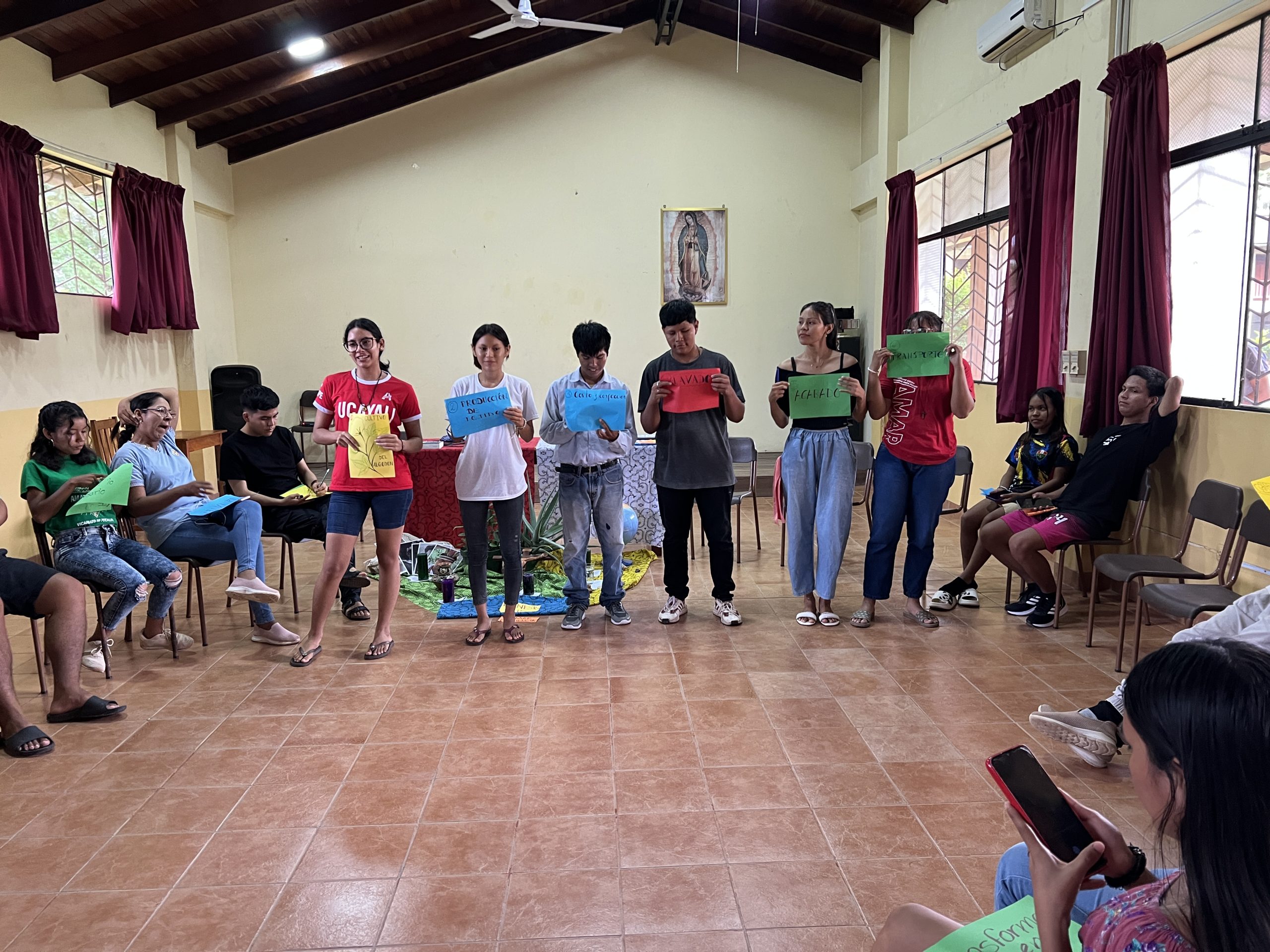 Entre las actividades realizadas, los jóvenes trabajaron en un «mapa parlante» para reconocer las amenazas que acechan la Amazonía y visualizar las acciones necesarias para su protección. Además, durante el taller práctico, se propusieron medidas concretas como el reciclaje, la reducción del uso de plásticos y el consumo responsable, las cuales podrán ser implementadas en sus comunidades. El retiro concluyó con un momento simbólico en el que los jóvenes plasmaron sus compromisos personales y comunitarios para el cuidado de la Casa Común y los colocaron alrededor del altar ecológico que construyeron desde la oración “Ama la vida, ama los bosques, Amazonía” al inicio del encuentro.
