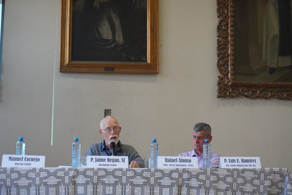 Luego, el p. Jaime Regan, SJ, ofreció una ponencia magistral que abordó más de cuatro siglos de labor misionera en la Amazonía, articulando un panorama integral de los aportes realizados en campos como la historia, geografía, historia natural, sociología, lingüística, educación, antropología y estudios religiosos. Destacó también el rol fundamental de instituciones como el CAAAP y el Centro Cultural José Pío Aza, así como de los cronistas, investigadores y misioneros que, a través de sus escritos y observaciones, han contribuido a construir el conocimiento contemporáneo sobre la región.