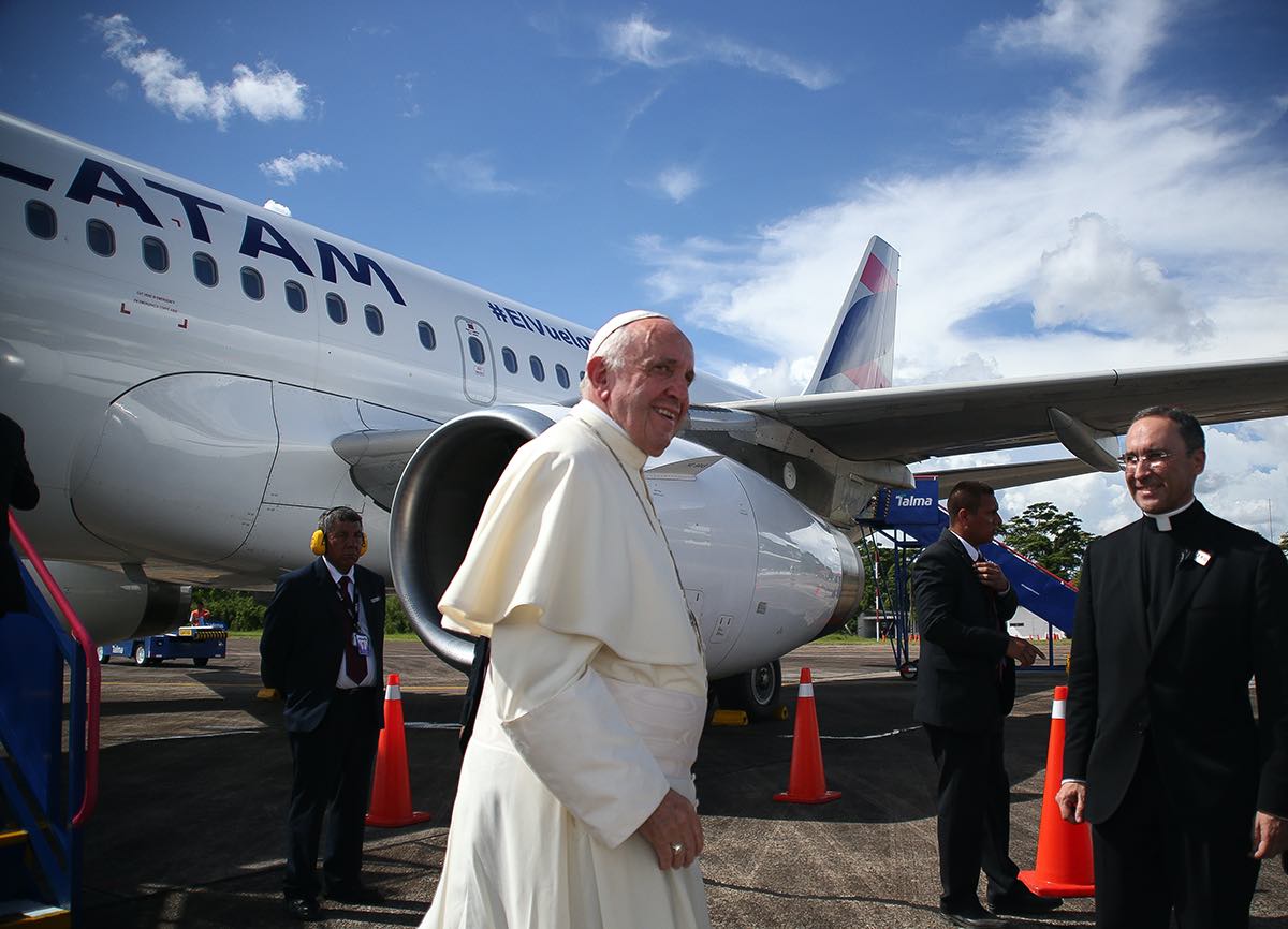 Francisco arribó a Puerto Maldonado pasadas las 10.00 de la mañana, siendo recibido en el aeropuerto internacional Padre Aldamiz por Mons. David Martínez de Aguirre y el resto de las autoridades locales. Luego de un caluroso recibimiento, su primera actividad (y la más recordada) se realizó en el coliseo de Madre de Dios. Allí se encontró, cara a cara, con cientos de indígenas amazónicos, representantes de buena parte de los pueblos originarios del Perú y otros llegados desde los países fronterizos de Bolivia y Brasil.